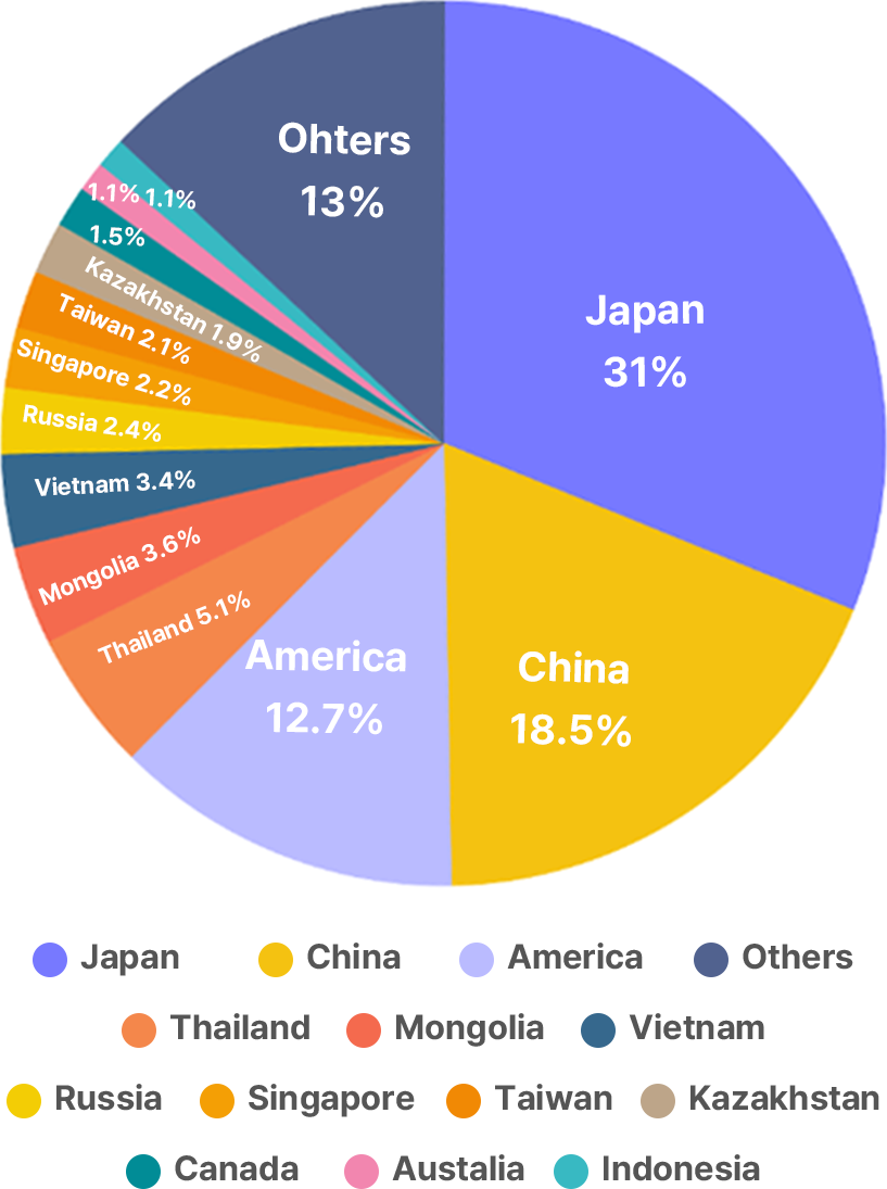 1. (By nationality) In 2023, foreign patients from 198 countries visited Korea, with the largest number coming from Japan, China, the United States, Thailand, and Mongolia.