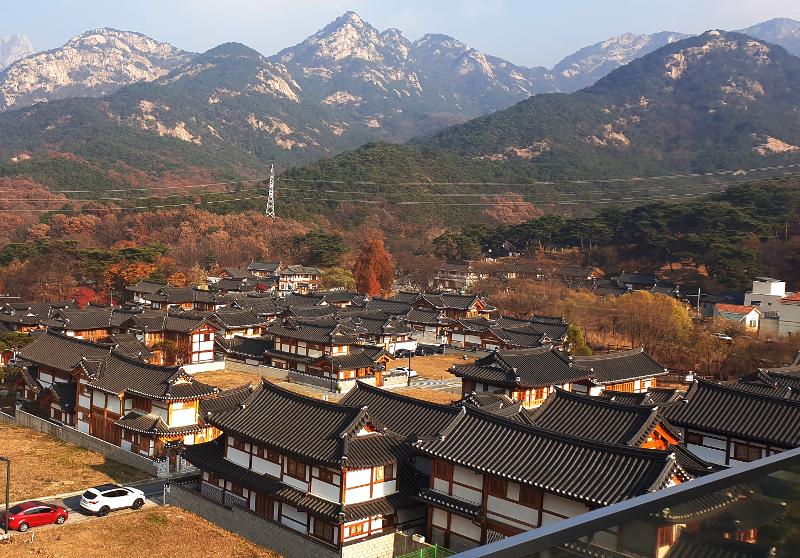 Located in Jingwan-dong of Eunpyeong-gu, the Eunpyeong Hanok Village captures a quaint, serene landscape with the Bukhansan Mountain serving as the backdrop for the modern, neatly-built hanoks. The village is set in greater Seoul in the vicinity of Yeonsinnae and Ilsan. If you take a snapshot from the middle of the road between the tall hanok structures, it'll give you the feeling of standing on the set of some historical film set during the Joseon Dynasty. There are also plenty of sites to see if you walk up from the hanok village along the deck path that will lead you to the Jingwansa Temple, Literature Museum, and more.